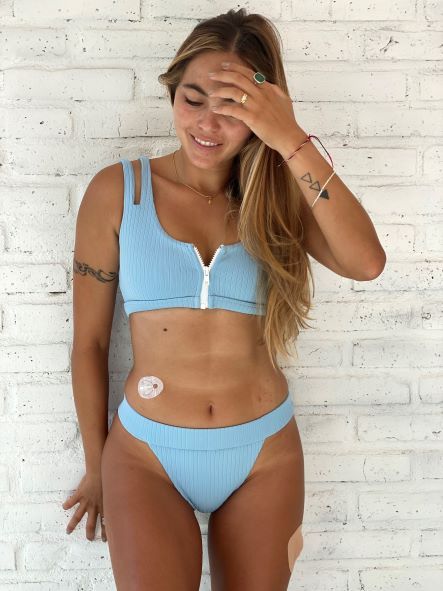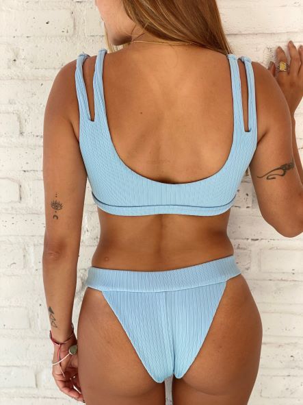 High waisted Bond Girl style with a girdle at the contour of the waist. Moderate coverage.