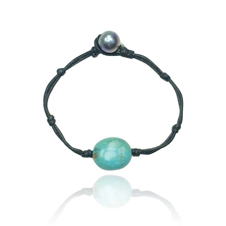 Unique string bracelet with an interesting Pearl closure and a rare turquoise stone.