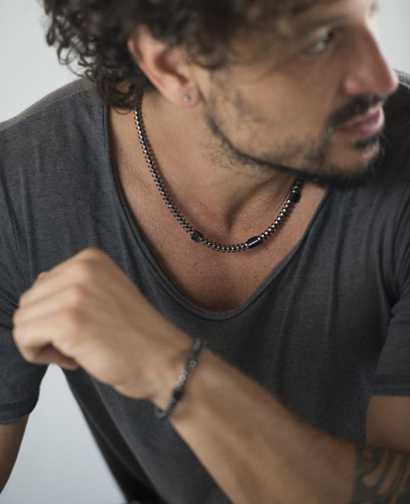 Jewel details: Onyx, Hematite, Black Tourmaline, 50 cm long 37.5 gr.