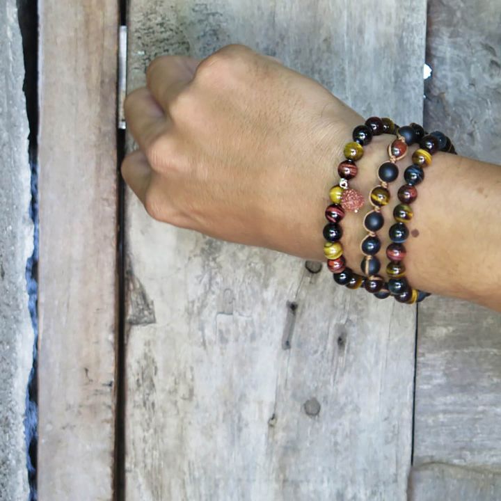 Jewel details: Tiger Eye 8mm, Rudraksha on silver 925, 20 gr.