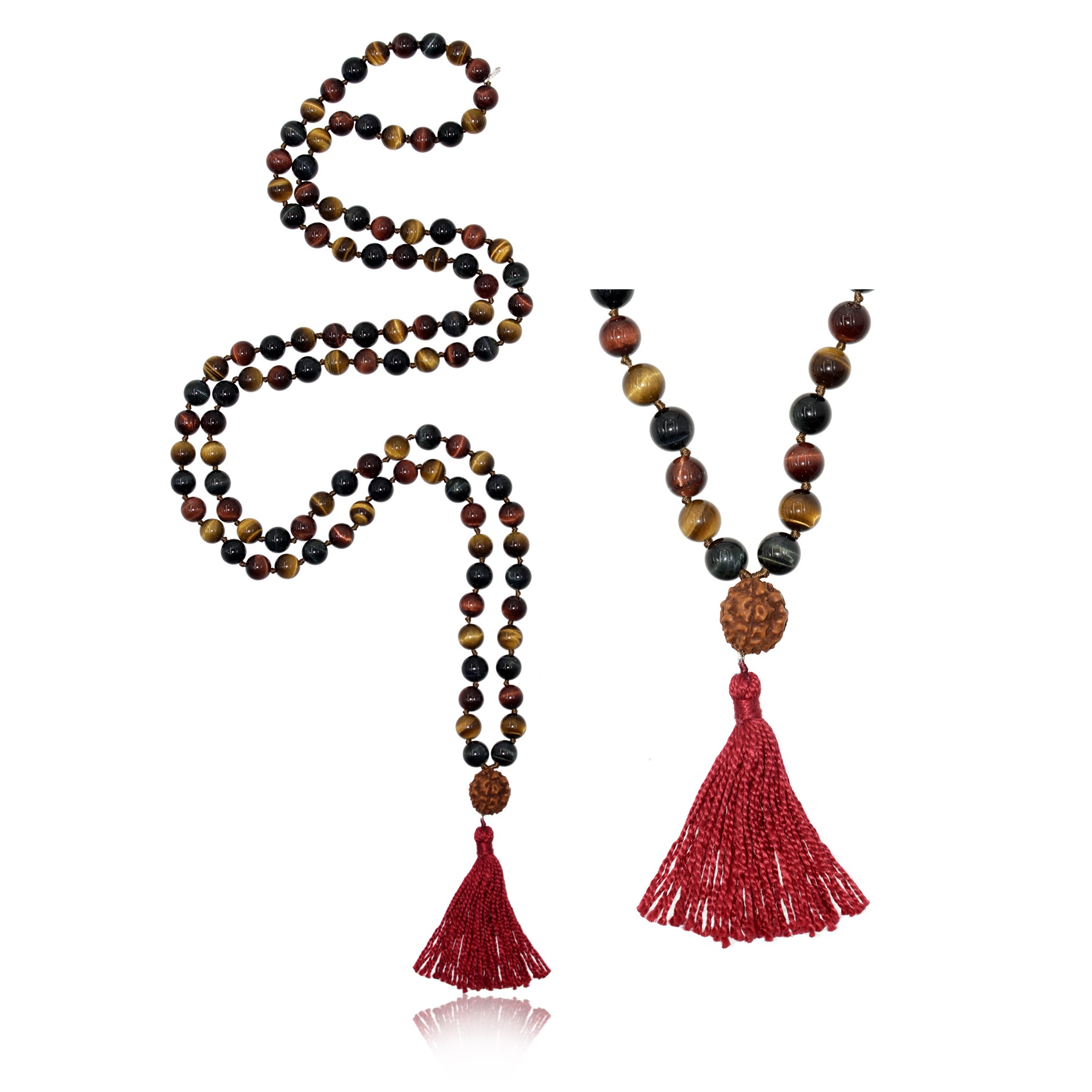 Jewel details: Tiger Eye, Rudraksha, 108 beads, 106 cm long, 84 gr.
