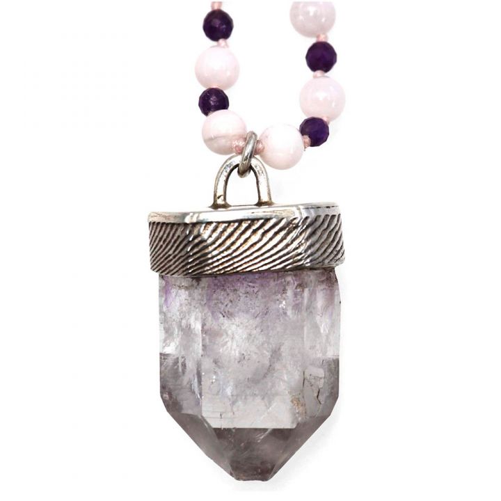 Jewel details: Pink Opal, Amethyst, Pendant Brandberg with Cuttlefish Bone Casting, 126 beads, 100cm long, 69gr
