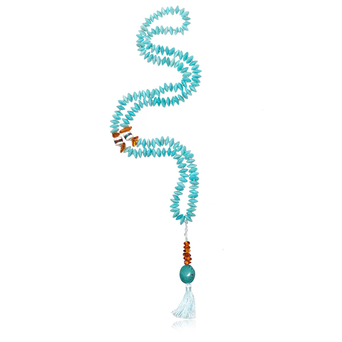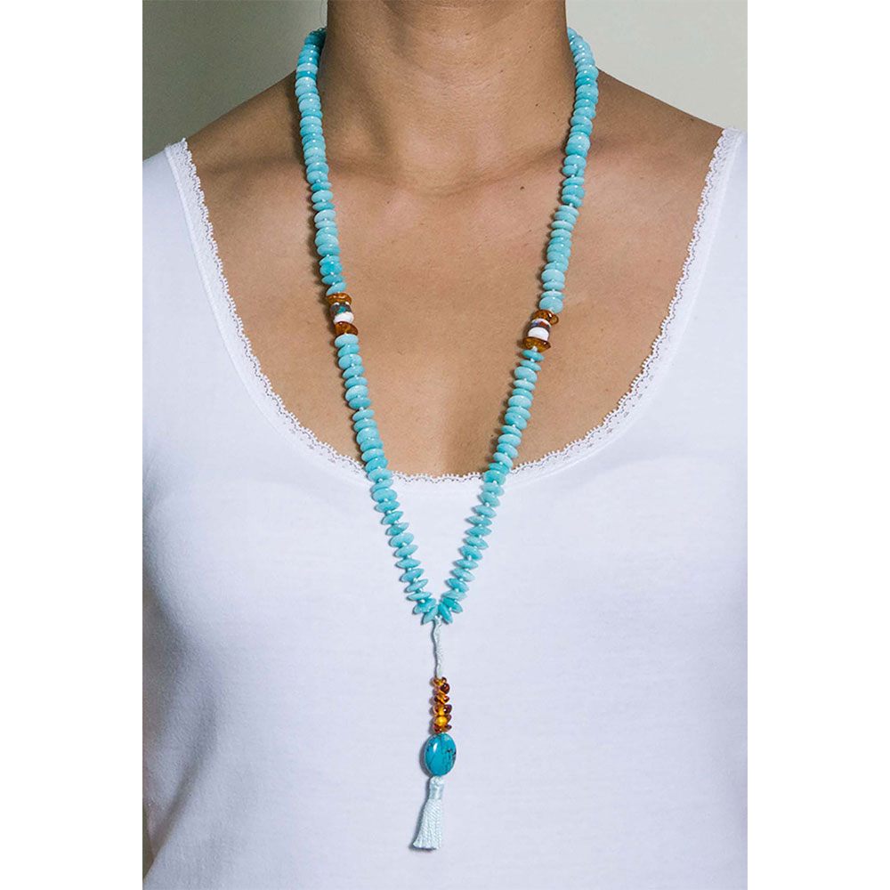 Jewel details: Amazonite, Amber, Tibetan Beads, Pend. Turquoise with Amber, 153 beads, 75cm long, 62.3gr