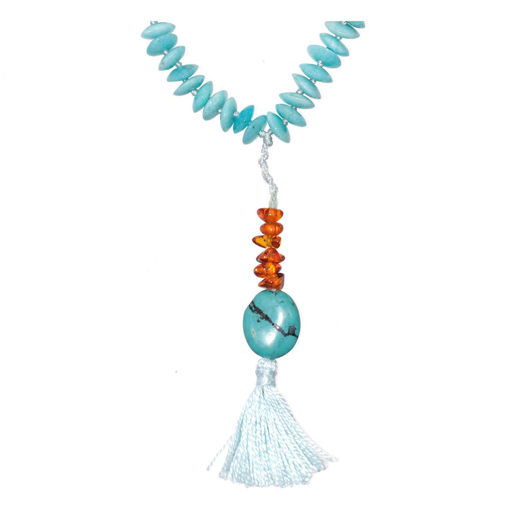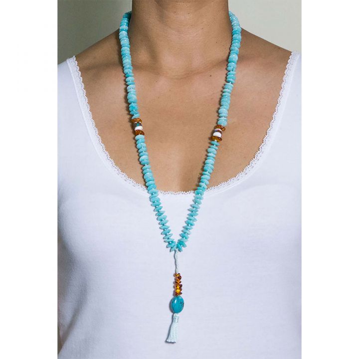 Rich in colors this mala has the beauty of a perfect summer day. Amazonite is a wonderful healer for your emotional body, transmuting fear and worry into a cool trusting and a deep calmness.