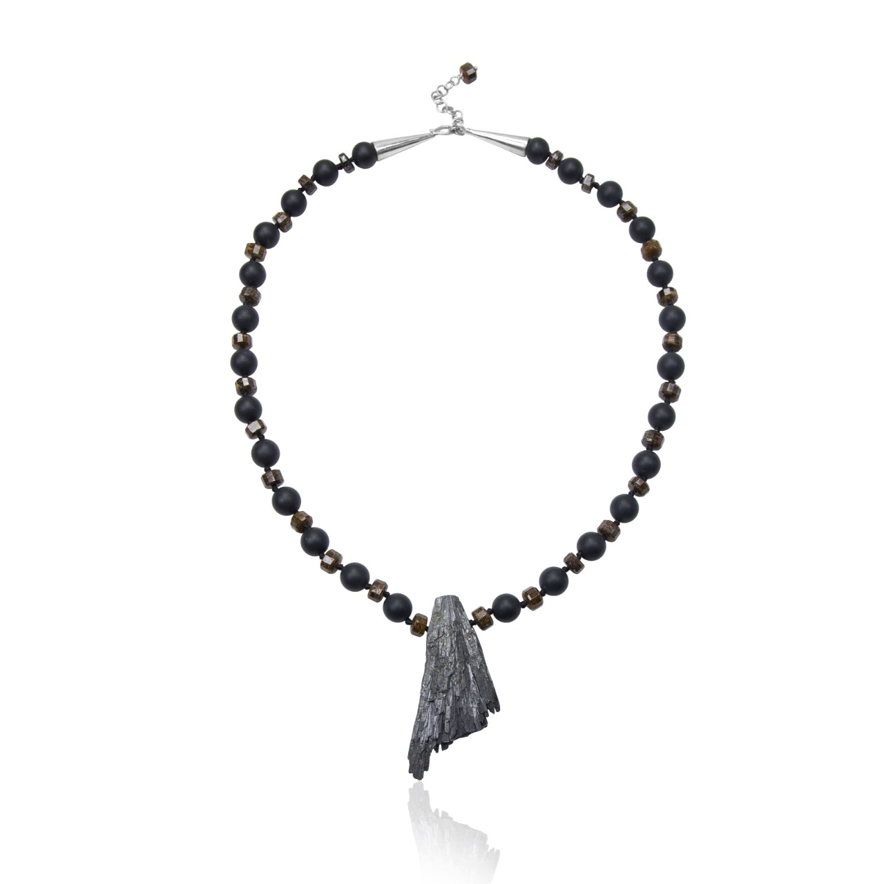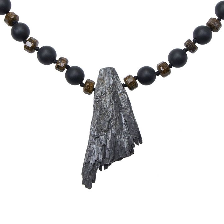 Jewel details: Onyx Frosted, Bronzite, Pend. Black Kyanite, 45 cm, 45.8 gr.