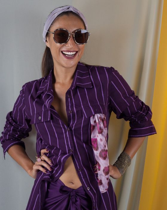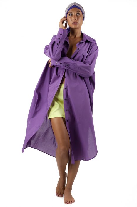Maxi Shirt Cotton Dress Plain Violet Tulip