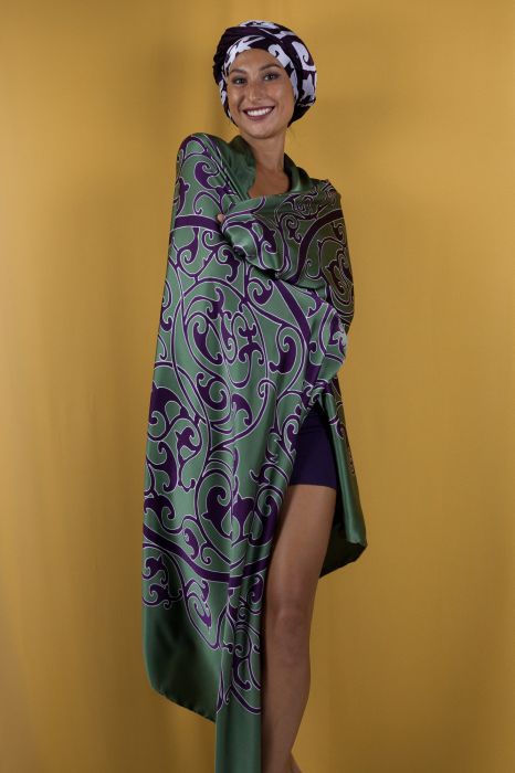 Koko Kaftan Silk Dress Leaves Royal Purple